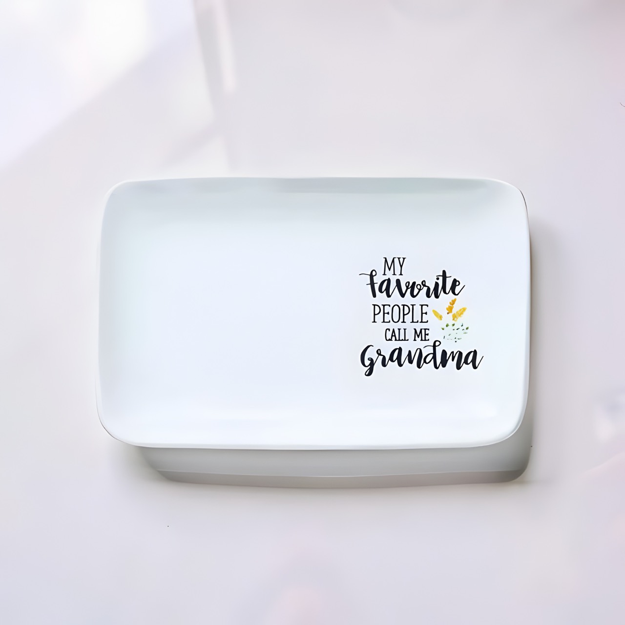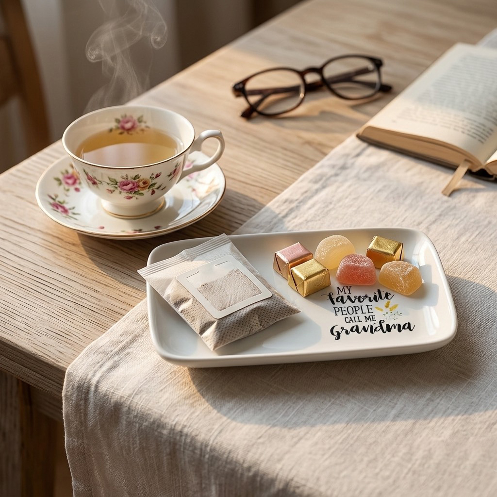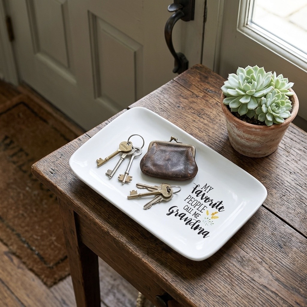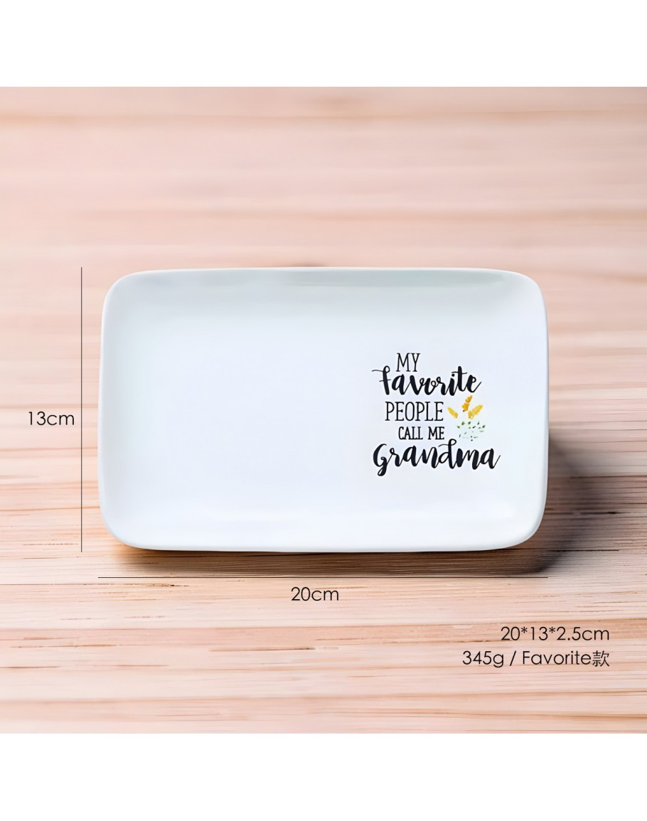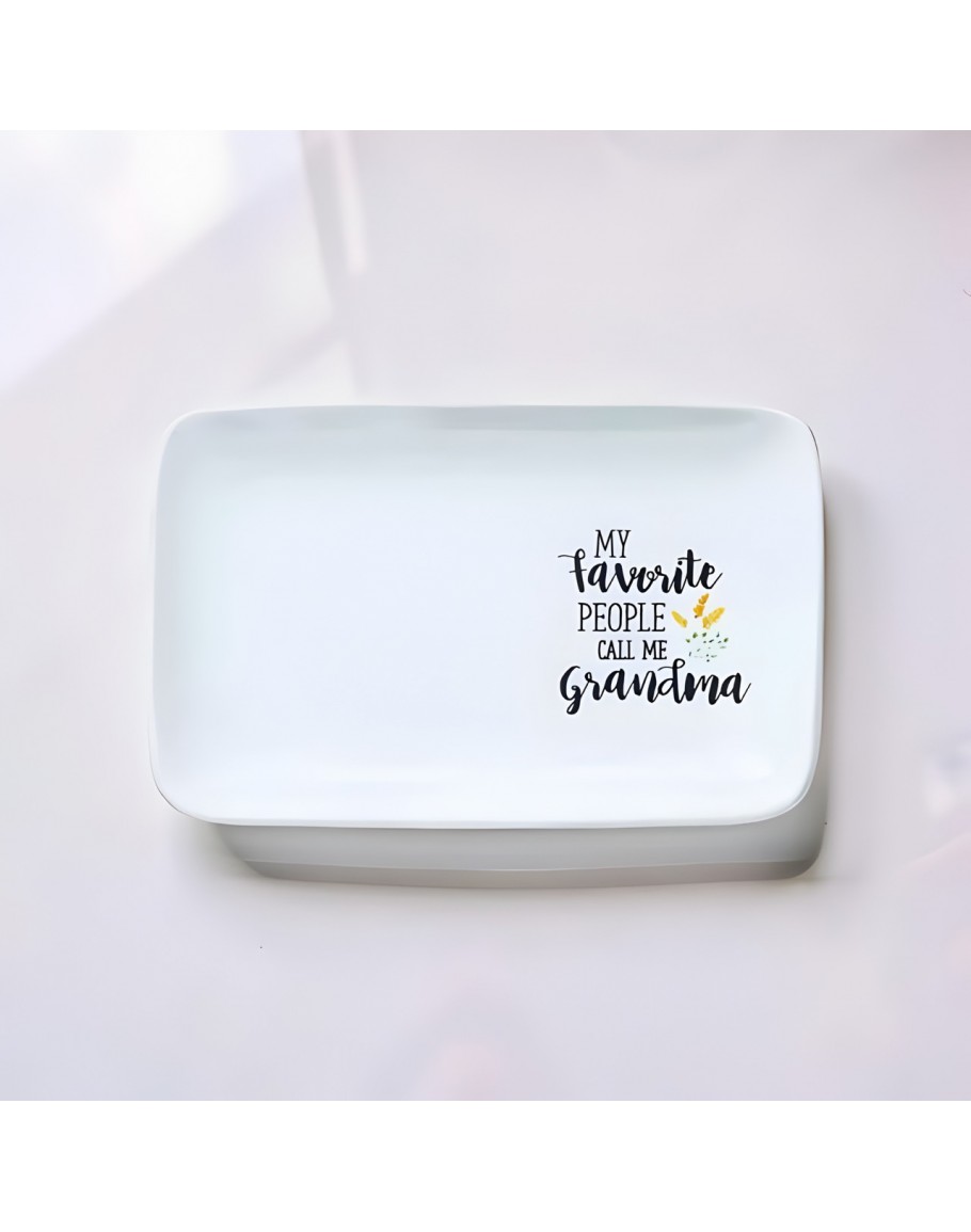 尋找溫馨的長輩禮物嗎?這款高品質白色陶瓷托盤印有「My Favorite People Call Me Grandma」,手寫字體搭配精緻點綴,最適合放置首飾、鑰匙或作為擺飾。兼具質感與情感的居家好物,讓祖母感受滿滿愛意。立即在 vitozakka 選購,點亮生活儀式感!